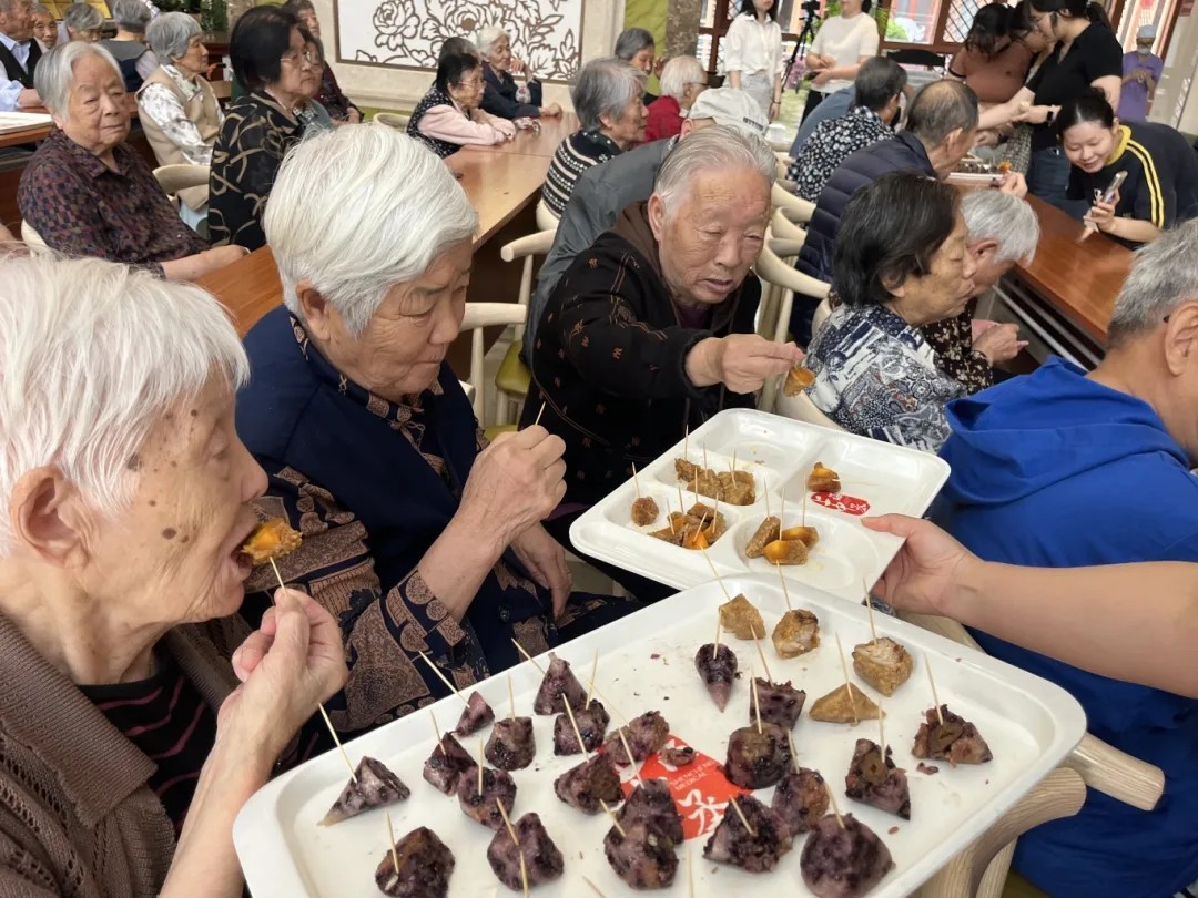 端午佳節(jié),怎么能少的了象征團圓與吉祥的粽子?工作人員們準(zhǔn)備了甜咸粽供爺爺奶奶們品嘗,蒸煮后的粽子香氣撲鼻,咬上一口,軟糯香甜,老人們品嘗著自己親手包的粽子,臉上洋溢著幸福的笑容。這不僅是一份美味,更是一份傳承千年的端午記憶。