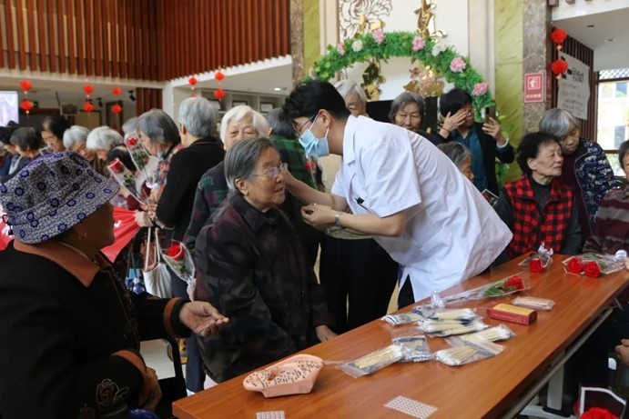 節(jié)日里,健康是最大的祝福。中醫(yī)師為長者們貼上了耳穴貼,通過傳統(tǒng)中醫(yī)幫助調(diào)節(jié)身體。小小的耳穴貼,承載著護(hù)理院對長者們無微不至的關(guān)懷。