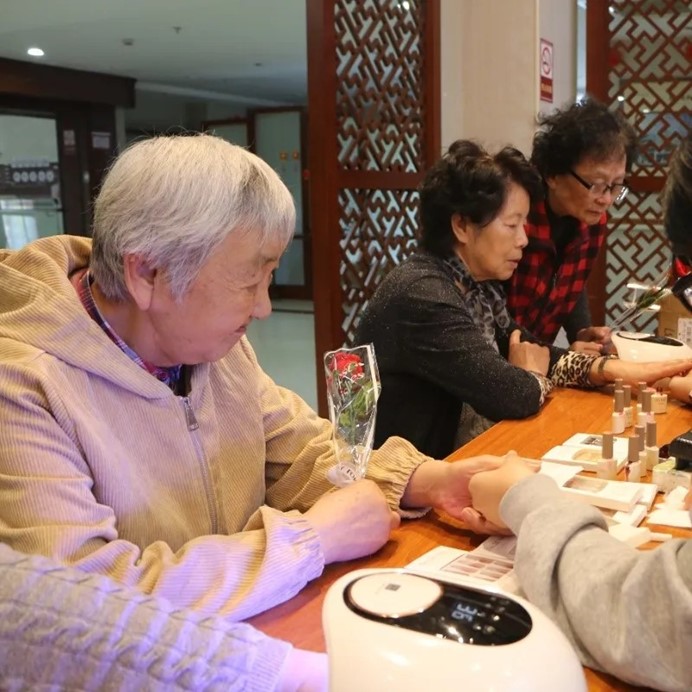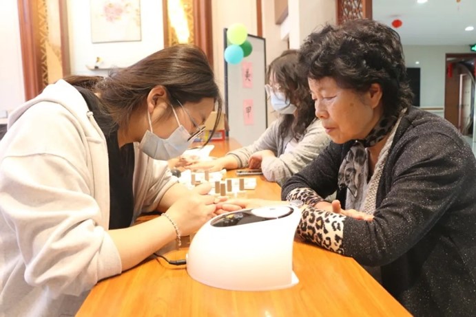 愛美不分年齡,工作人員為奶奶們提供了“美甲體驗(yàn)”服務(wù)。奶奶們挑選著自己喜歡的顏色,一邊聊天一邊享受指尖的裝扮,仿佛回到了年輕的時(shí)光。