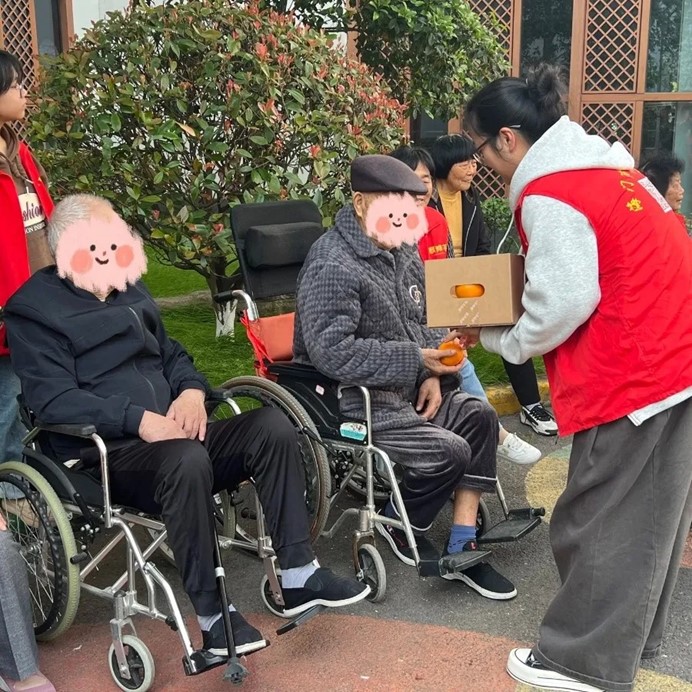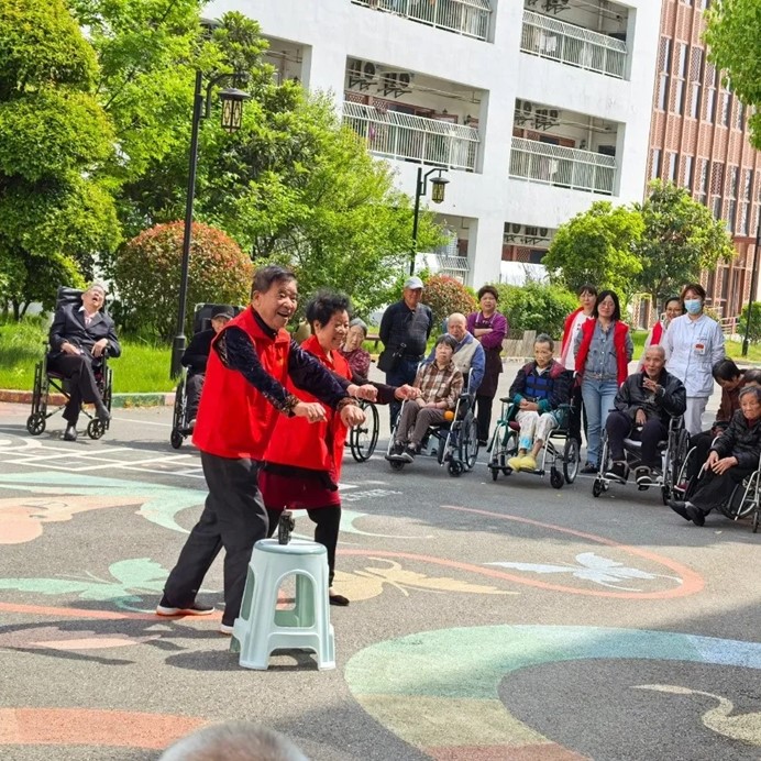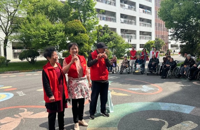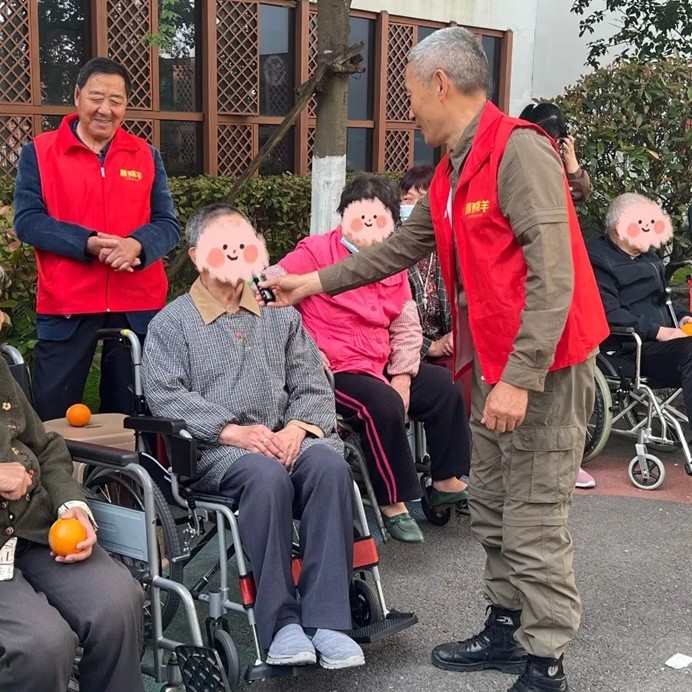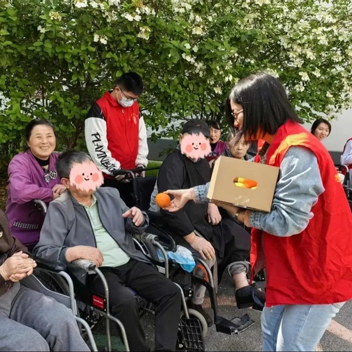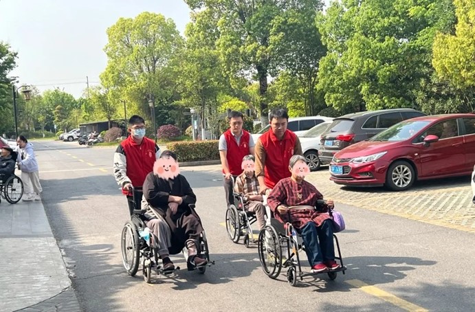 除了物資捐贈,志愿者們還主動推著老人們散步,陪他們聊天、拉家常。春日暖陽下,護理院的院子里充滿了歡聲笑語。長者們分享自己的人生故事,志愿者們陪伴老人們唱歌、做游戲,共度歡樂時光,溫情的互動讓這個上午格外溫馨。