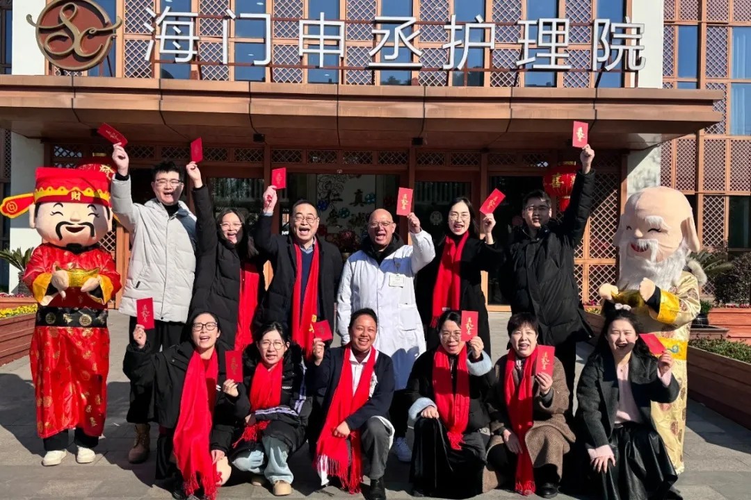 “恭喜發(fā)財,紅包拿來”海門申丞護理院特為在院長者準備了新春紅包墻,讓爺爺奶奶們在蛇年鴻運當頭,萬事順遂。