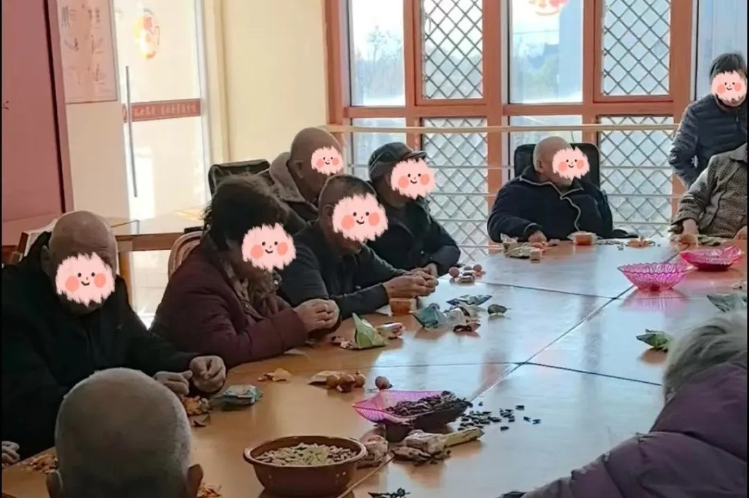 新年的第一縷陽光透過云層,一盤盤象征著福氣和財富的包子被放入蒸籠,熱氣騰騰,香氣四溢。午飯過后,食堂張羅著為爺爺奶奶們包制餛飩,大家坐在一起邊聊家常,邊包餛飩,年味就藏在了這一聲聲歡笑之中。